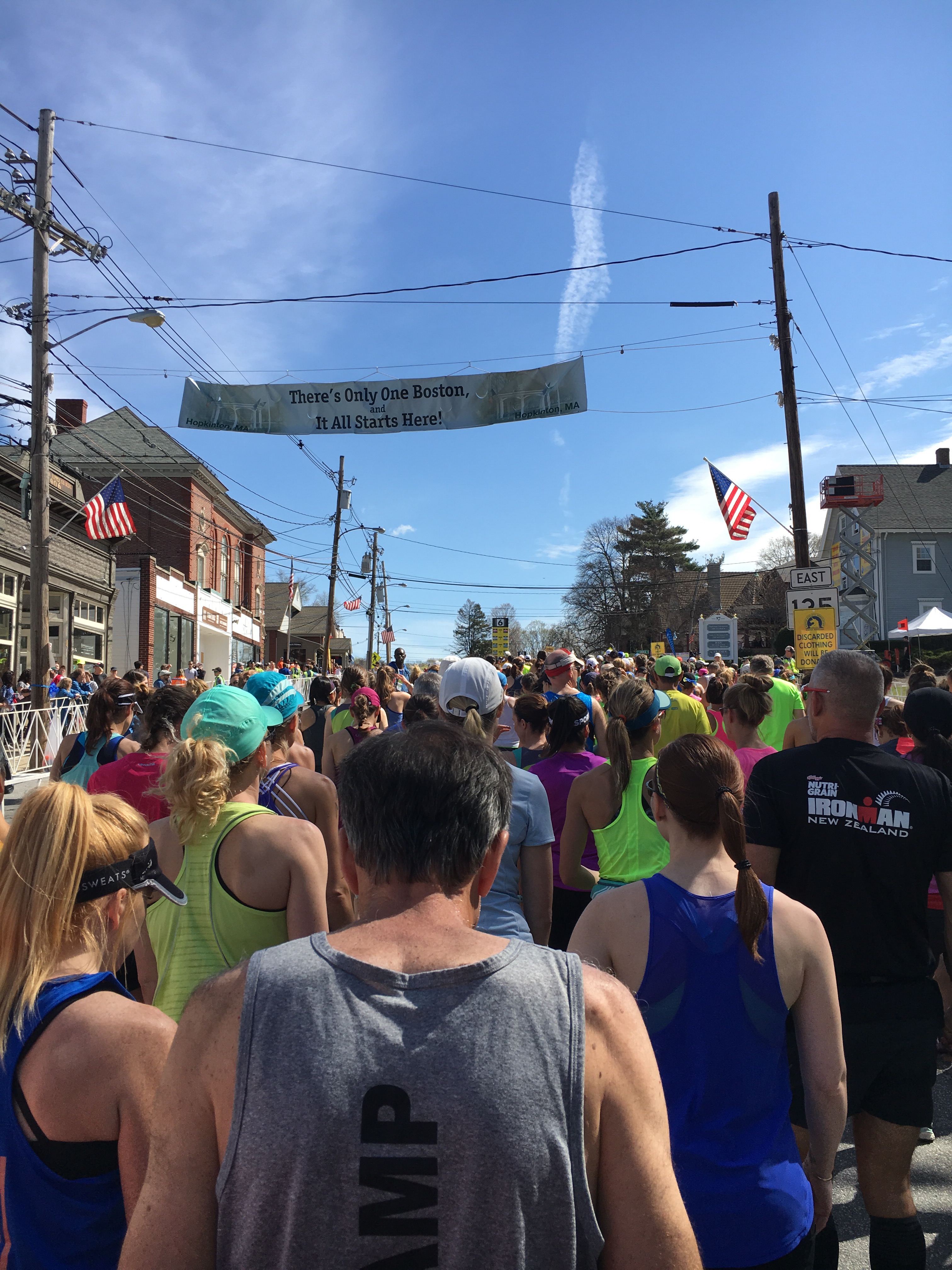 I was in high spirits and then suddenly jetlag hits me. I arrived in Boston before lunch on Saturday and so I barely had enough time to get over my jetlag. So I found myself a sunny spot to sit on as I tried to recover from it. Then I hear a voice calling my name and it’s fellow Pinoy runner Kim Atienza with Anthony Pangilinan. Such a blessing to hang out with them and chat away, distracting me from how I was feeling. I headed to the starting line feeling much better.